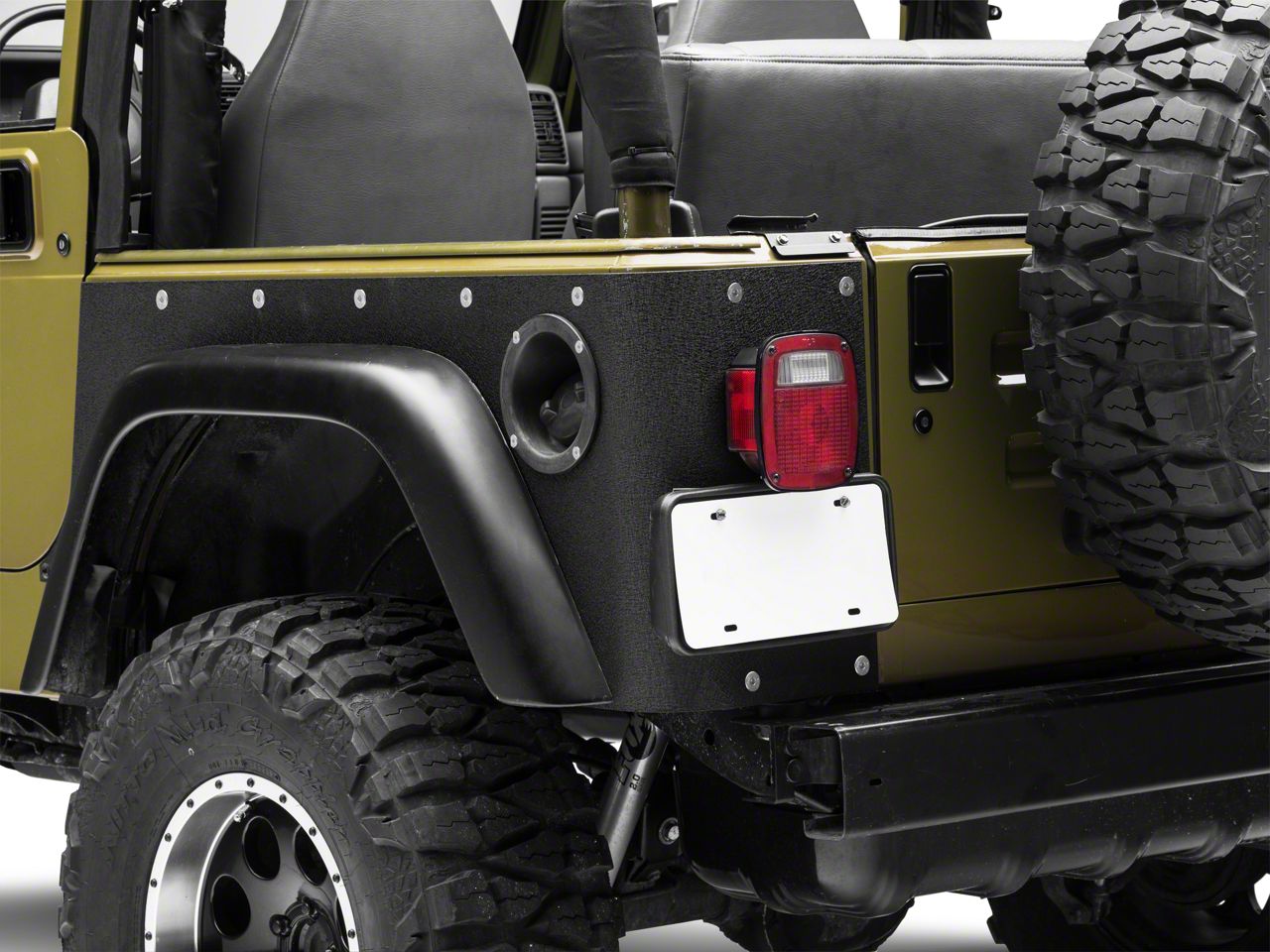 Protection. Smittybilt XRC armor corner guards bolt over the rear quarter panels to protect your Wrangler from all the dents and scratches the off road has to offer. Installation is straightforward with minor modification to your rig.