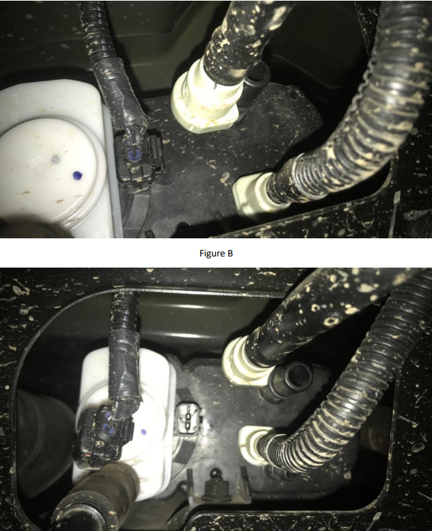 2. Locate the evap canister and disconnect the connector and hoses using pliers (Figure B and Figure C).