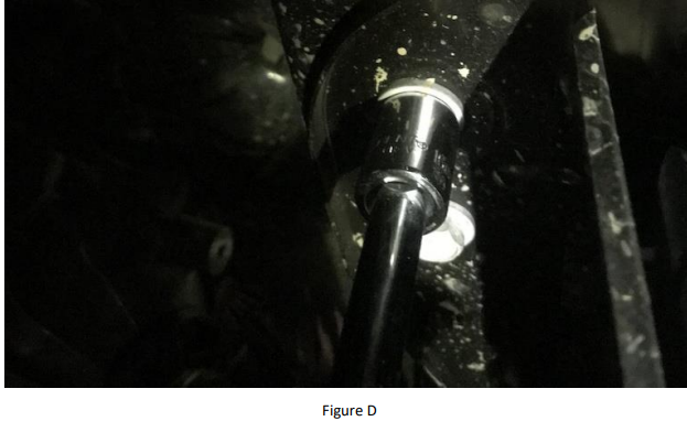 3. Remove the three bolts holding the evap canister to the frame using a 16mm socket wrench (Figure D). Keep these bolts for installing the new skid plate.
