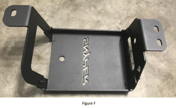 5. Connect the brackets to the Snyper Evap Canister Skid Plate using the supplied M6 button head bolts, M6 flat washers, and M6 serrated flange nuts and an Allen wrench (provided) and 10mm wrench (Figure F).