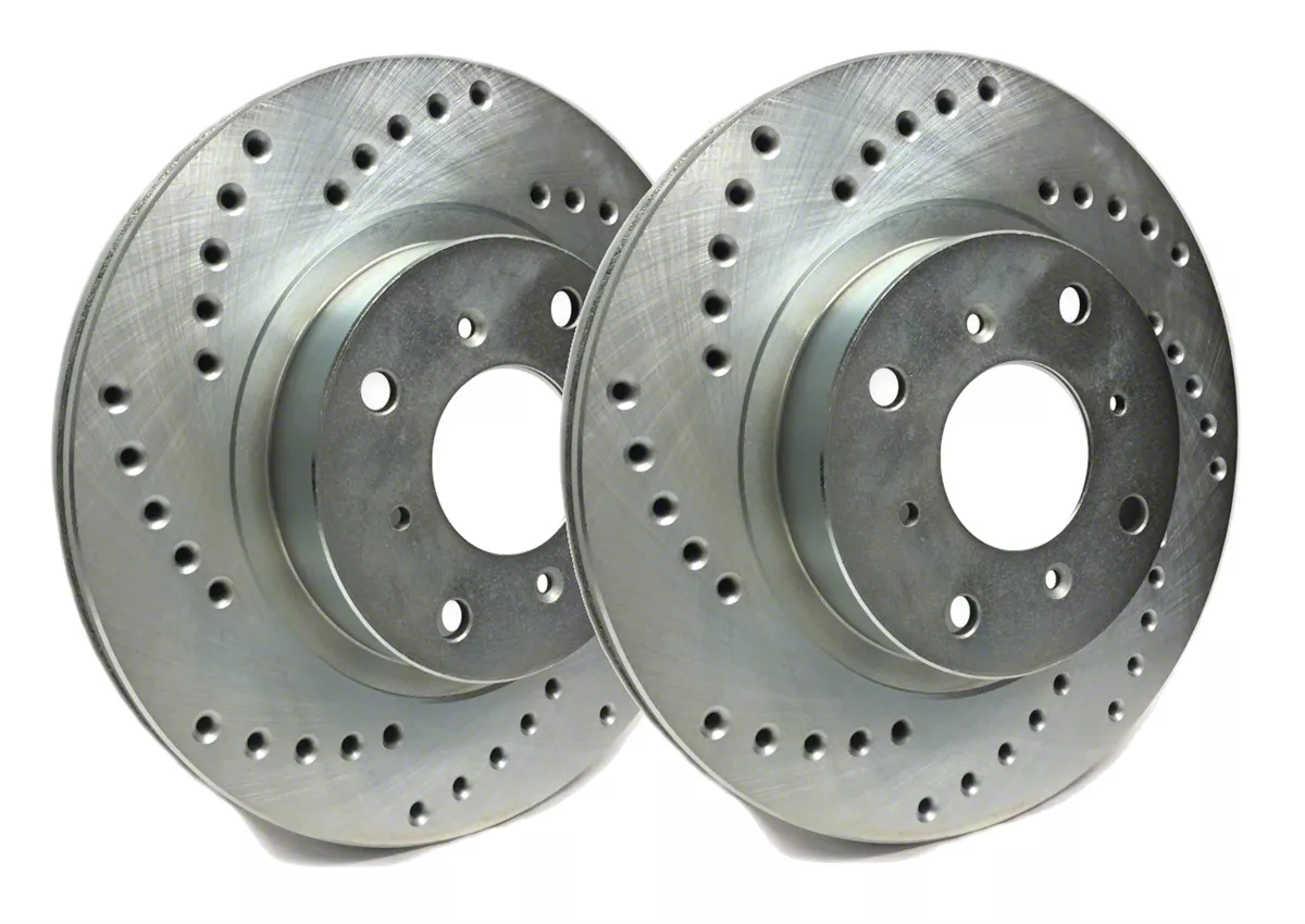 SP Performance Cross Drilled Brake Rotors with Silver ZRC Coating.