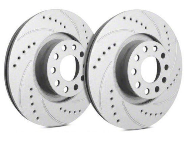 Powerful Brake Performance. Take your brake game up a notch by ditching your old brake rotors and replacing them with this front pair of SP Performance Cross-Drilled & Slotted 5-Lug Rotors with Gray ZRC. These rotors are designed to improve air circulation on your brake kit, thus resulting in a much-improved brake pad bite. With this installed on your Toyota Tacoma, you can pull a hard stop without damaging your brake components.