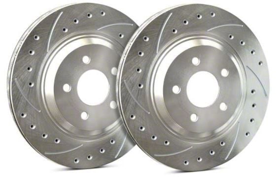 Superior Braking Performance. Your Jeep Wrangler JK’s stock brake rotors are not equipped to handle upgraded and performance build. Hence, you need this SP Performance Cross-Drilled and Slotted Rotors with Silver Zinc Plating. These are rear brake rotors designed to provide reliable stopping power for performance and race-modified vehicles. The rotors feature the combination of cross-drilled and slotted designs. This eliminates the sharp edges on the rotors and reduces surface temperature. Featuring OEM specifications, these rotors are machine-balanced and include double disc ground to eliminate any major brake system modifications.