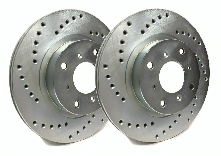 Cross Drilled Rotors, as mentioned above, are the go to for all performance car manufacturers. The reason for this is the ability for the holes to keep the brake pads and brake rotors as cool as possible during heavy braking. The cross drilled holes, just like in the drilled and slotted brake rotors, will keep the brakes cooler and help with removing water to prevent hydroplaning. While Cross Drilled rotors look amazing and perform great, there is a risk that comes with them. There is always the chance of these brake rotors developing stress cracks when under extreme use, the radial chamfer on SP Rotors will reduce those stress cracks. Also, during normal street use, the rotors will never see enough heat to create stress cracks, however, with that said, these rotors are not recommended for track use.