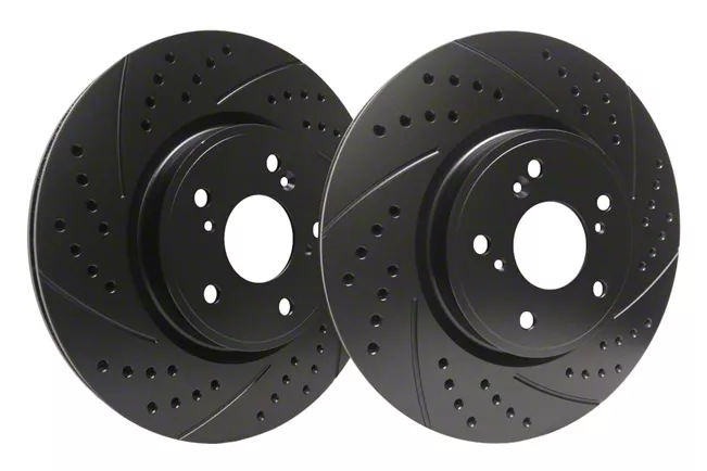 SP Performance Double Drilled and Slotted Brake Rotors with Black Zinc Coating.