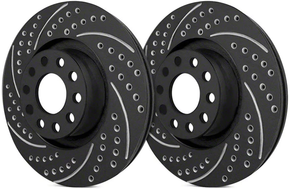Increased Stopping Performance. Experience faster yet smooth and quiet braking with SP Performance Double Drilled and Slotted 6-Lug Rotors with Black Zinc Plating, Front Pair. Engineered to match the specifications of your stock rotors, these pair of rotors are the most cost-efficient way of improving your vehicle's brake performance.