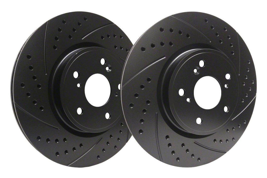 SP Performance Double Drilled and Slotted Brake Rotors with Black Zinc Coating.