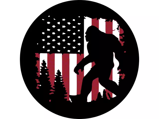 Comprehensive Tire Shielding. Protect your spare tire and enhance your Jeep's appearance with this Spare Tire Covers Bigfoot or Sasquatch American Flag Spare Tire Cover. This high-quality cover is designed to shield your spare tire from harsh weather, road debris, and UV damage while adding a stylish and patriotic touch to your ride.