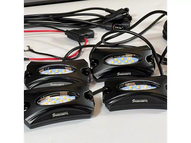 Application. The Sparksmith Switchback LED Rock Lights feature universal fitment and can be used for off-road, work, or accent lighting, with some adaptation required depending on the vehicle or mounting location.