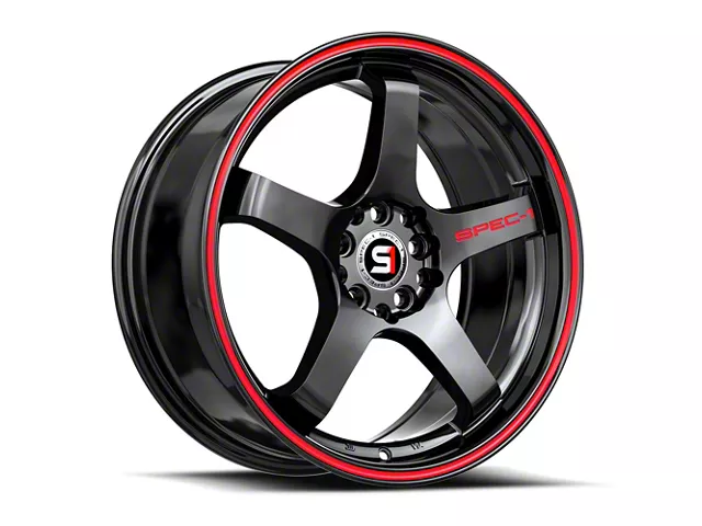 This 17x7.5 Spec-1 SPT-31 Gloss Black and Red Line 5-Lug Wheel; 17x7.5; 42mm Offset is completed in a high-quality gloss black finish with red accents to make your wheel the envy of everyone. For added looks and durability, the wheels has a durable clear coat that withstand the rigors of daily driving.