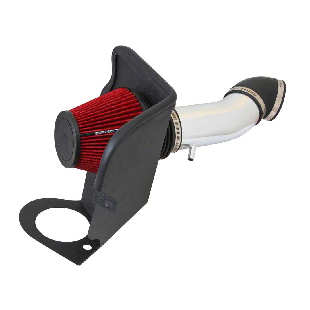 Construction and Appearance. Built with a polished aluminum intake tube, the Spectre system combines durability with a sleek, high-performance look. The reusable red Spectre air filter provides excellent filtration while allowing strong airflow, ensuring long-lasting function and eye-catching style under the hood. Its included heat shield helps protect the intake air from engine heat, further improving efficiency.