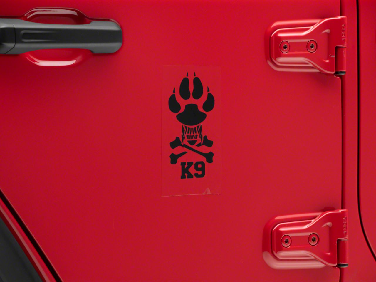 K9 Decal. Show your support for your furry friends in blue with this SEC10 K9 Novelty Decal. This decal features a very unique paw print, fang and cross bone design that will look great in your rear or side window.
