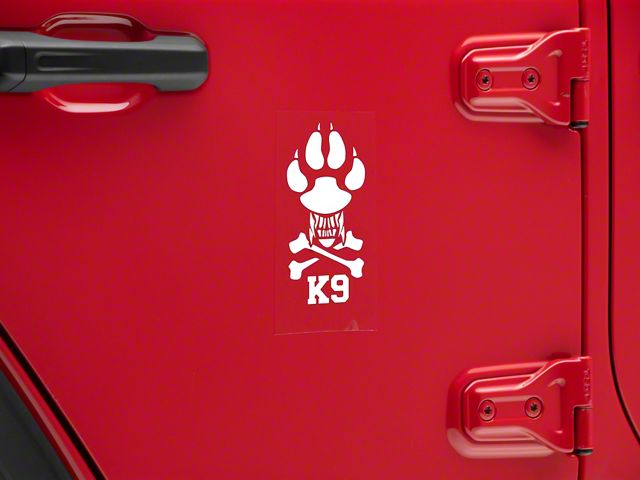 K9 Decal. Show your support for your furry friends in blue with this SEC10 K9 Novelty Decal. This decal features a very unique paw print, fang and cross bone design that will look great in your rear or side window.