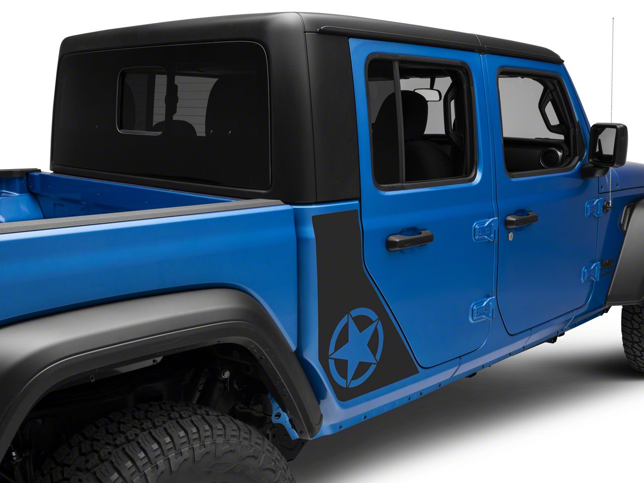 Application. These SpeedForm Side Panel Star Decals; Matte Black are designed to fit 2020-2026 Jeep Gladiator JT models. Includes two decals.