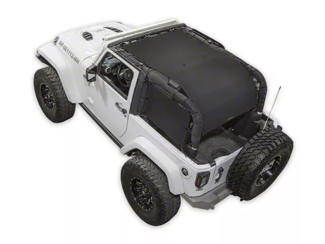 Application. The SpiderWeb Shade ShadeCage Trail Mesh Top; Black fits 2007-2018 Jeep Wrangler JK 2-Door Models.