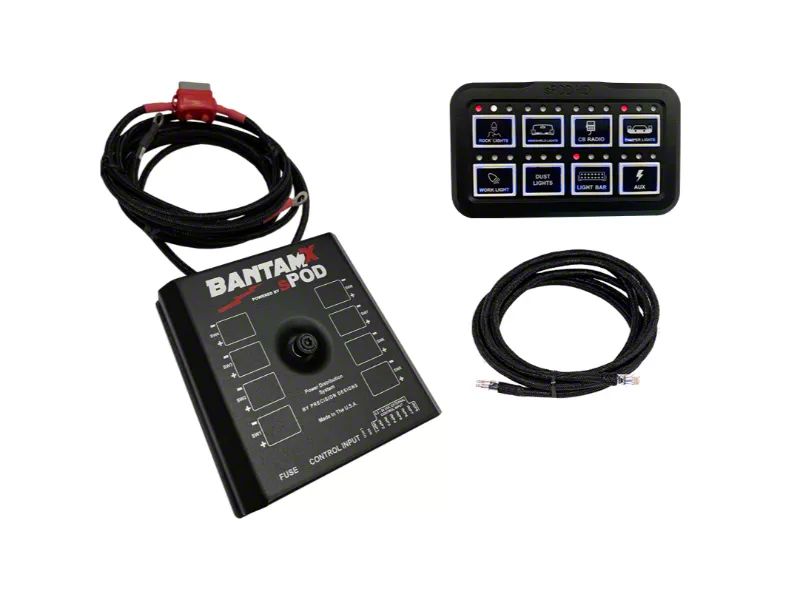 Advanced Power Management. The sPOD BantamX HD Relay Power Control System is designed to efficiently manage and control multiple accessories, making it ideal for off-road, utility, and high-performance vehicle applications. With an expandable 8-circuit design, it delivers seamless power distribution with programmable functionality.