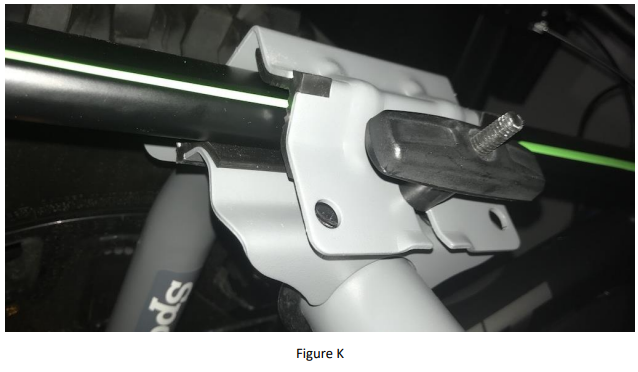 12. Place bike on mount and return the plates removed in Step 9 (Figure K). Tighten down bolts.