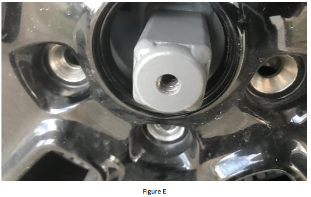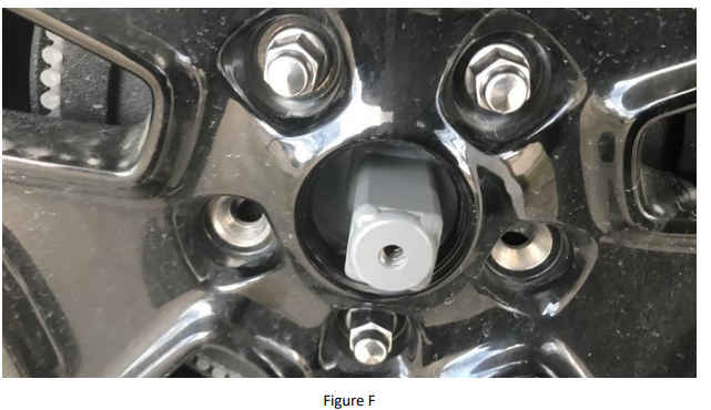 7. Tighten the three lug nuts back into place using a 19mm socket wrench (Figure F).