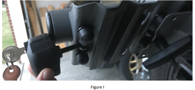 10. Unscrew the screw-in knob on top of the bike mount (Figure I) and remove the top plate and caps