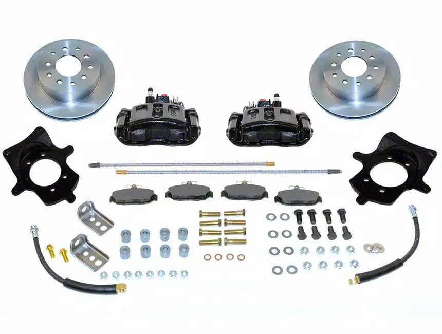 Installation. The installation of SSBC-USA Rear Disc Brake Conversion Kit replaces rear drum brakes with disc brakes, bolts to existing points, and no drilling required.