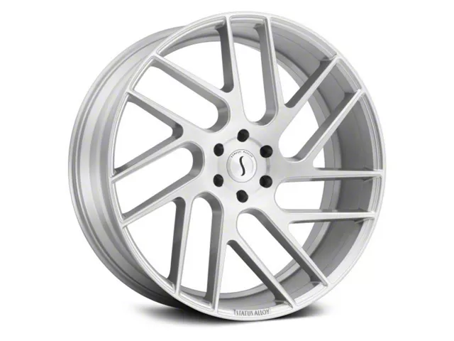 The 24x9.5 Status Juggernaut Silver with Brushed Machined 6-Lug Wheel; 24x9.5; 25mm Offset is completed in a sturdy, stunning finish that will be the envy of everyone. The finish has been thoroughly tested to make sure it can handle the rigors of daily driving.
