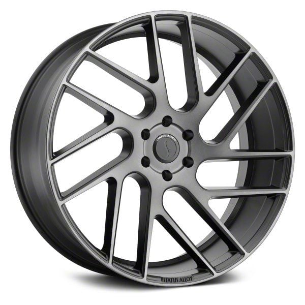 Status Juggernaut Carbon Graphite 6-Lug Wheel; 24x9.5; 25mm Offset exudes sophistication with its finish, offering a sleek and modern appeal to any vehicle it adorns. The design is meticulously crafted to enhance the aesthetic of your vehicle, giving it a distinctive and upscale look. Perfect for those seeking to elevate their vehicle's style, this wheel blends seamlessly with both contemporary and classic vehicle designs, making it a versatile choice for a wide range of vehicles. Its robust construction ensures durability, making it a reliable choice for drivers who value both style and quality.