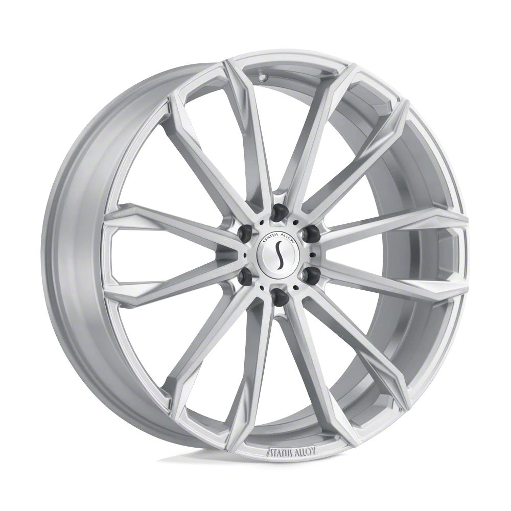 Status Mastadon Silver with Brushed Machined Face Wheel; 24x9.5 The Status Mastadon Silver with Brushed Machined Face Wheel combines a sleek, sophisticated design with premium construction that enhances the visual appeal and complements a wide range of vehicle styles. This wheel is perfect for those seeking to make a bold statement while maintaining elegance and robustness.