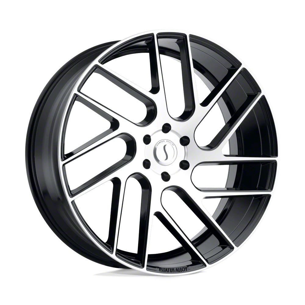 Status Juggernaut Gloss Black with Machined Face Wheel; 24x9.5 The Status Juggernaut Gloss Black with Machined Face Wheel combines a sleek, sophisticated design with premium construction that enhances the visual appeal and complements a wide range of vehicle styles. This wheel is perfect for those seeking to make a bold statement while maintaining elegance and robustness.