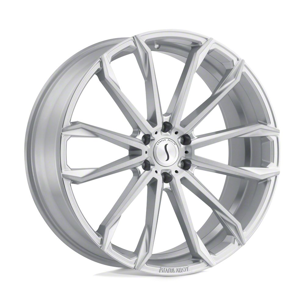 Status Mastadon Silver with Brushed Machined Face 6-Lug Wheel; 22x9.5; 15mm Offset is a perfect blend of style and rugged design, making it a standout choice for those looking to enhance their vehicle's aesthetic appeal. Its bold, dark metallic finish pairs seamlessly with a wide variety of vehicle styles, offering both modernity and durability. Built by Status, this wheel is designed to elevate your vehicle's appearance with its robust presence.