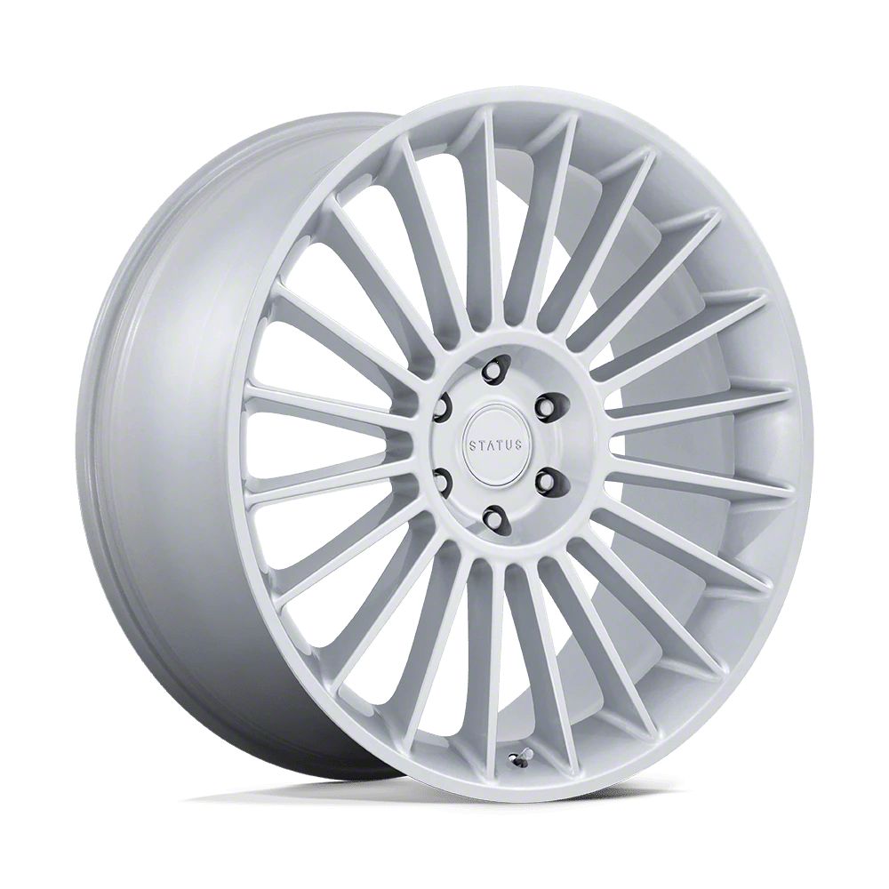 Status Venti Gloss Silver 6-Lug Wheel; 22x9.5; 25mm Offset The Status Venti Gloss Silver 6-Lug Wheel combines a sleek, sophisticated design with premium construction that enhances the visual appeal and complements a wide range of vehicle styles. This wheel is perfect for those seeking to make a bold statement while maintaining elegance and robustness.