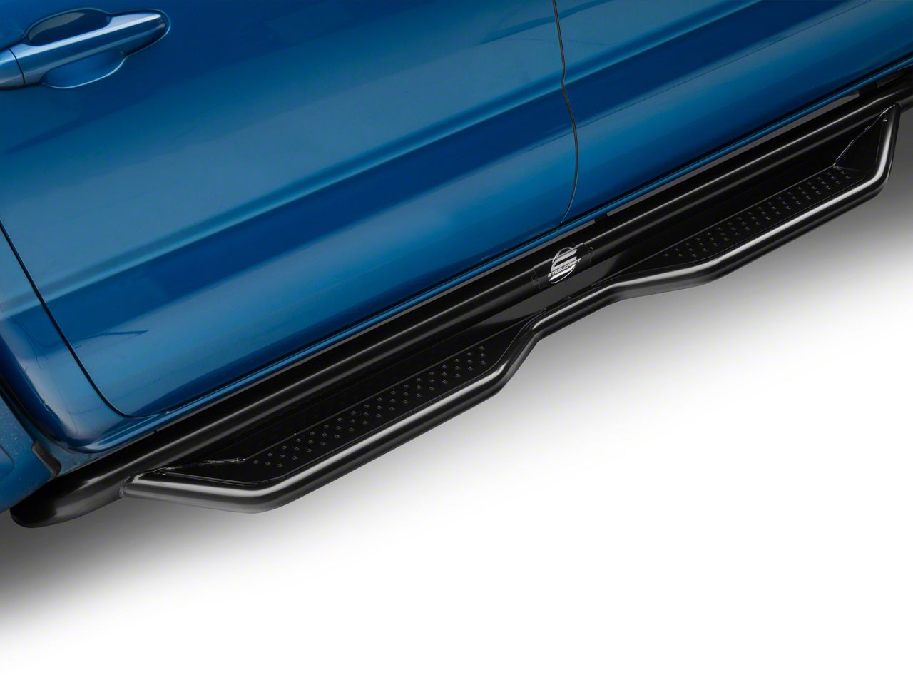 Greatly Aids Entering and Exiting Truck. Drastically improve the ease of entering and exiting your Toyota Tacoma Double Cab truck with the Heavy Duty Side Step Bars in semi-gloss black. Covering both driver and passenger sides, these steps have a 5-inch step surface with reverse punched plates for maximum traction and ample space for your feet.