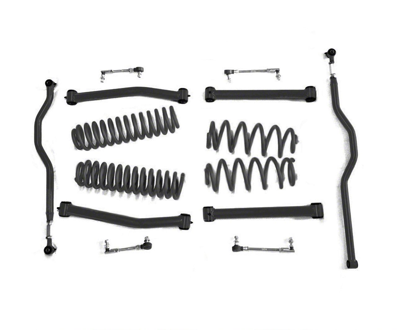 Front and Rear End Links for Unparalleled Traction. No matter how tight the turns may get, this lift kit keeps your Jeep’s wheels on the road. That’s because it comes with front and rear end links to keep your vehicle from leaning when performing hard turns.