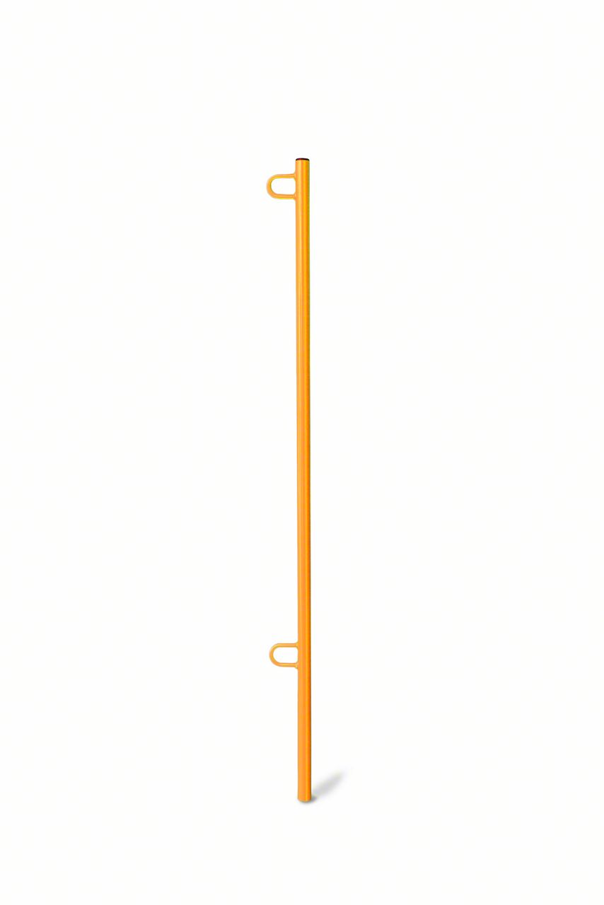 Construction and Design. This Flag Pole Kit is made from 1 inch OD x.120 inch wall tubing. Its fluorescent orange finish blends and there's a plastic cap at the top of the pole to keep water and dirt out. The spacing between loops is 34 inches, which means you can hang a variety of flags.