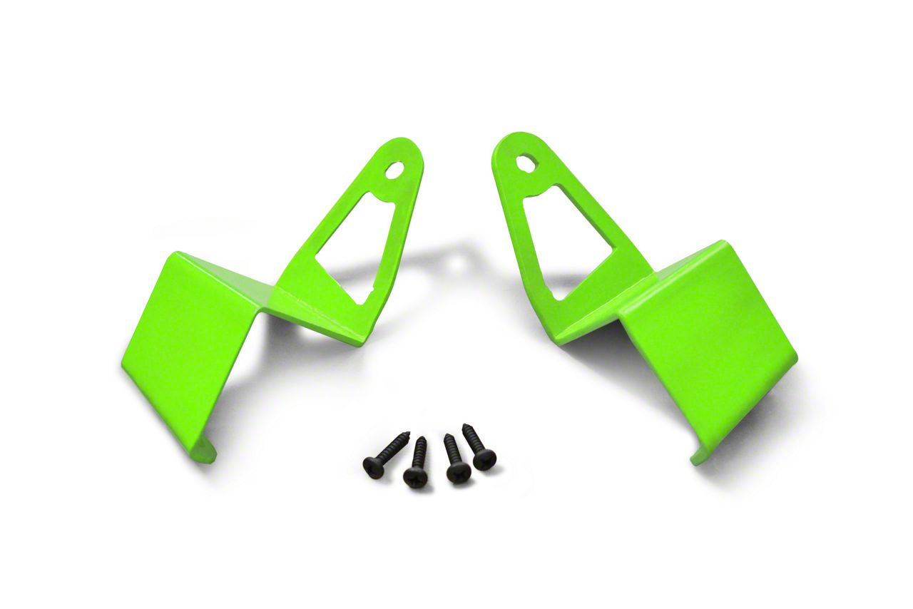 Application. These Steinjager 50-Inch LED Light Bar Windshield Frame Mounting Brackets; Neon Green are designed to fit 1997-2006 Jeep Wrangler TJ models. Driver and passenger side included. Please note that no lights are included in this kit.
