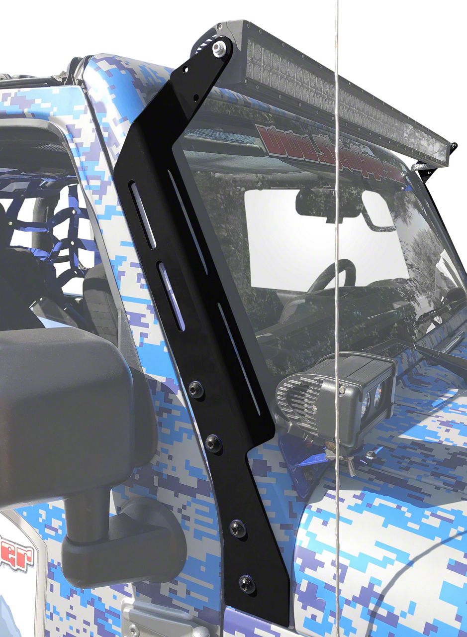 Application. Steinjager specifically designed the A-Pillar Bare Metal LED Light Mount Brackets for use on all 2007-2018 Jeep Wrangler JK models.