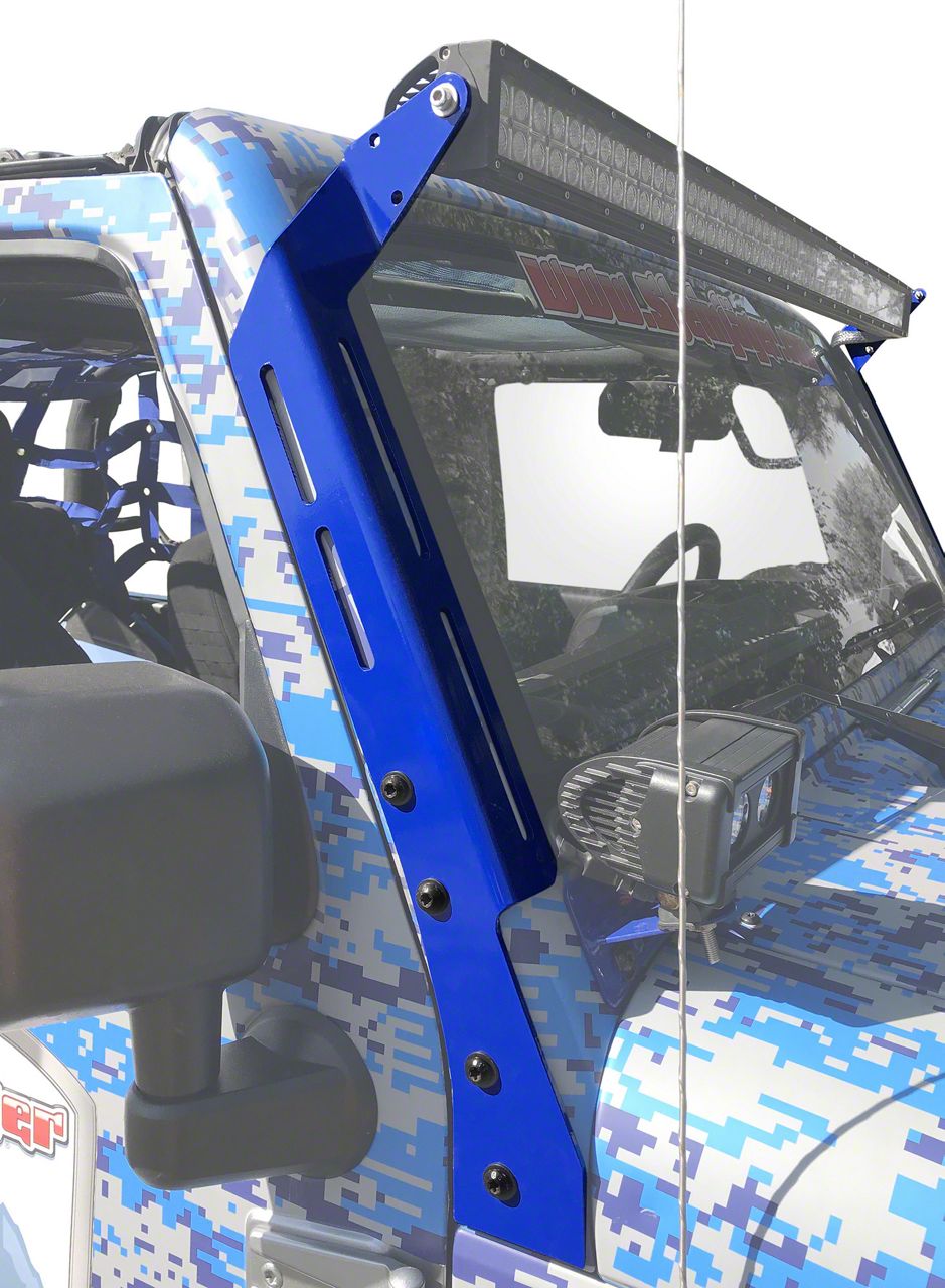 Application. The Southwest Blue Steinjager A-Pillar LED Light Mount Brackets are made to fit 2007-2018 Jeep Wrangler JK models.