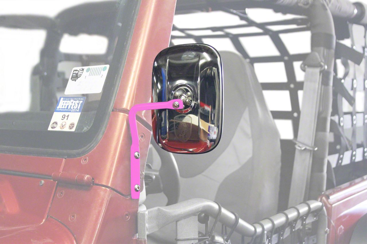 Application. The Steinjager A-Pillar Mounted Mirror - Pinky is designed for the 1997-2006 Jeep Wrangler TJ.