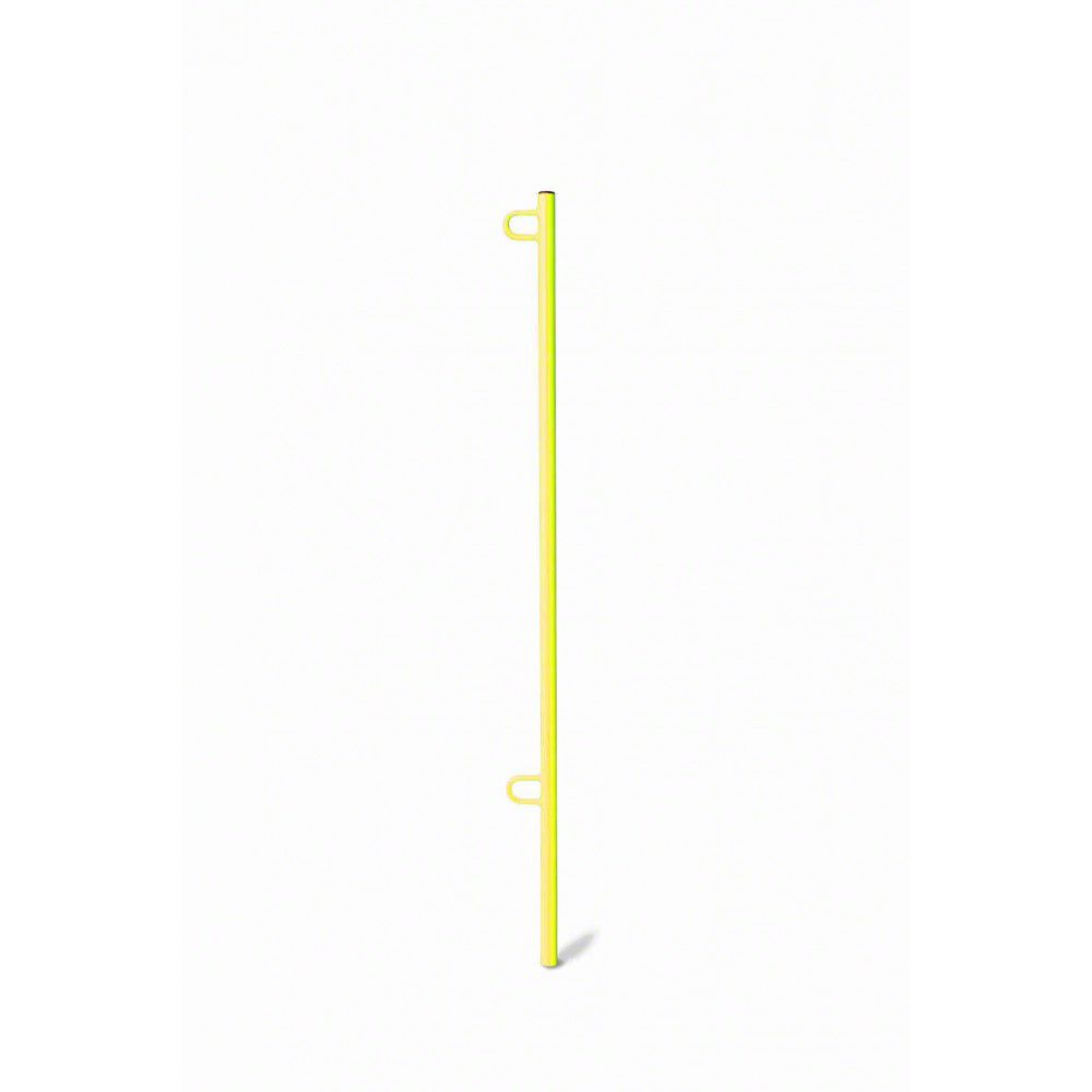 Construction and Design. This Flag Pole Kit is made from 1 inch OD x .120 inch wall tubing. Its neon yellow finish blends and there's a plastic cap at the top of the pole to keep water and dirt out. The spacing between loops is 34 inches, which means you can hang a variety of flags.