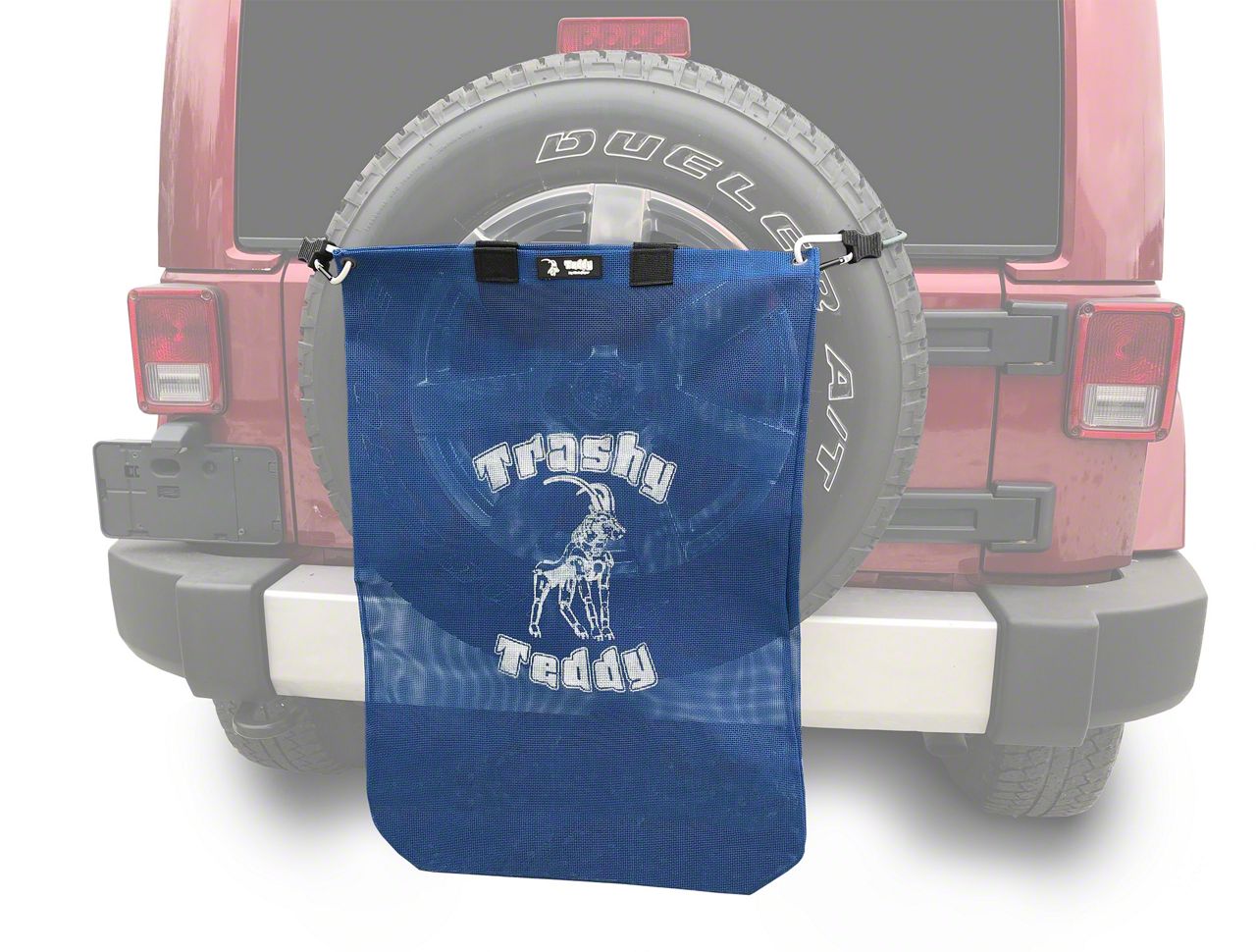 Secure Your Trash Teddy. Now that you have your Trash Teddy handy, you’ll need the Steinjager Carabiner Bungee for Trash Teddy. This combination carabiner and bungee cord enables you to secure your Trash Teddy onto your spare tire. This makes cleaning up your campsite or picnic area much easier.