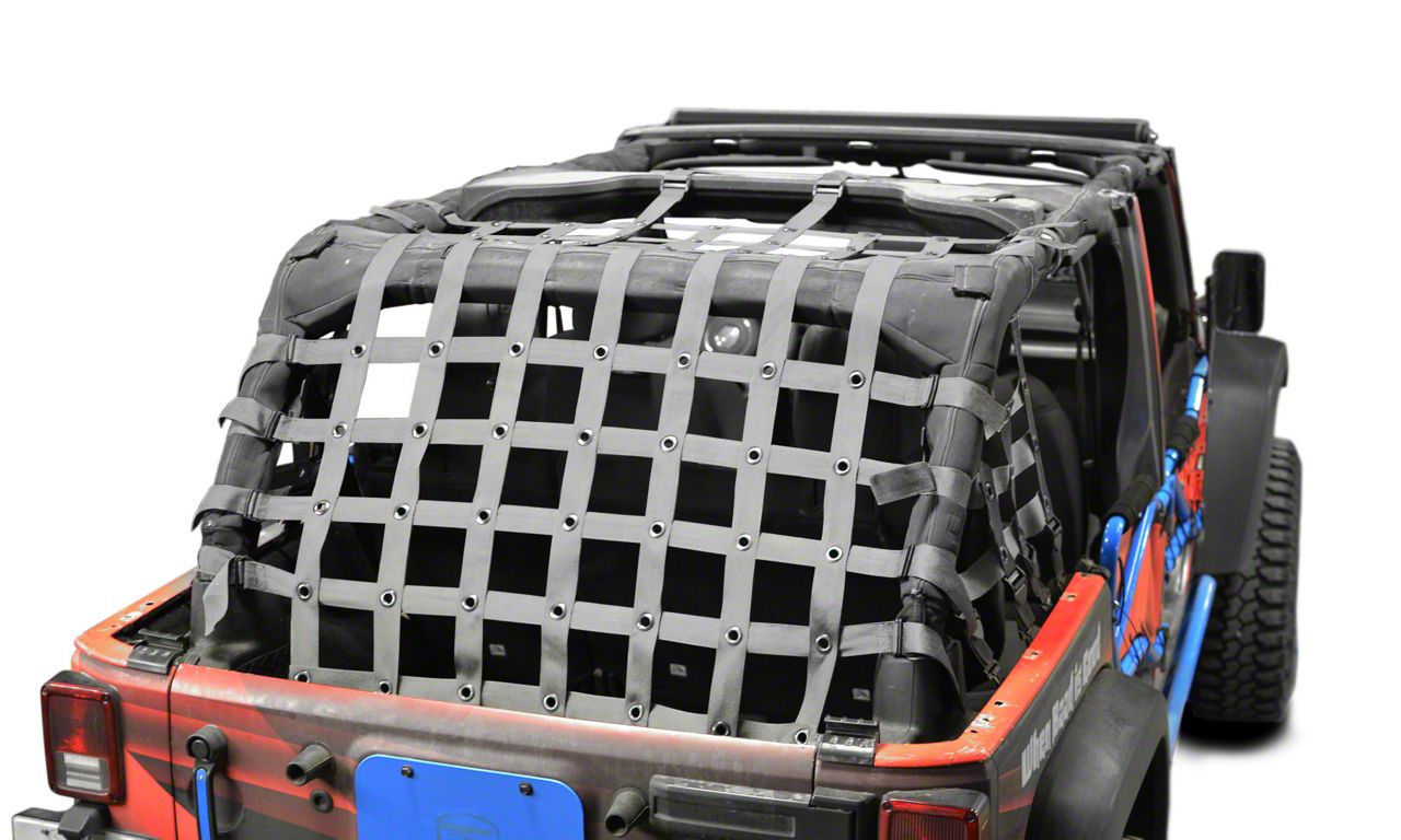Application. The Steinjager Cargo Net in Gray is designed exclusively for all 2007 to 2018 Wrangler JK 4-Door models.