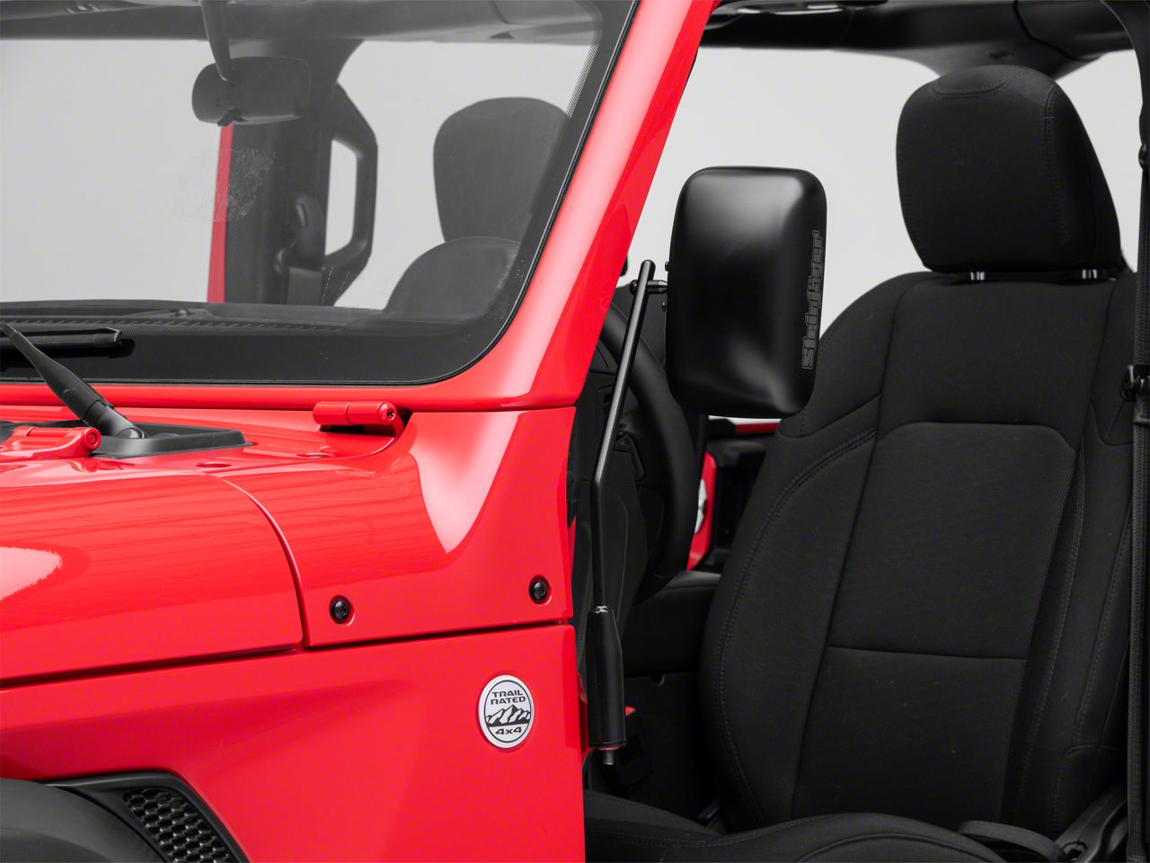 Application. These black Steinjager Door Hinge Mounted Mirrors are designed for all 2018-2026 Jeep Wrangler JL models. This set includes driver and passenger side mirrors.