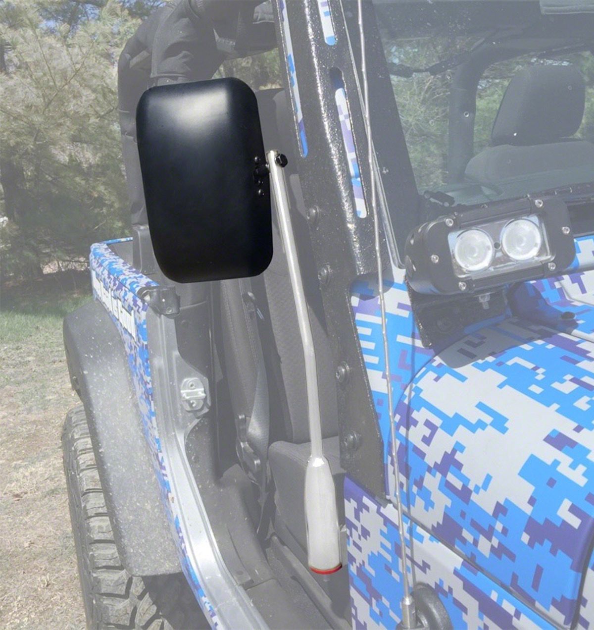 Durable and Secure Mounts. The patented design of these door hinge mounted mirrors allows a stable and secure mounting of your JL’s side mirror. The attachment tube features an inner poly sleeve that eliminates metal to metal contact to keep your paint safe while the mirrors are installed. What's more, the cloud white powder-coated finish adds extra protection from chipping, fading, and scratching.