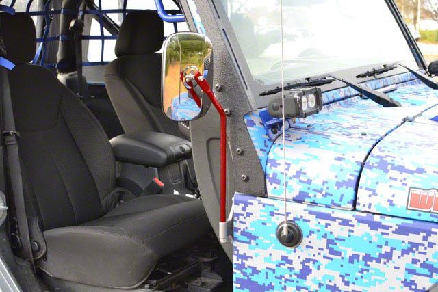Safer Driving Experience. Not being able to see the vehicles or objects behind you can be the cause of a bad road accident. With these Steinjager Red Baron Door Hinge Mounted Mirrors installed on your 2007-2018 Jeep Wrangler JK, you can have a wider field of vision while driving, allowing you to see any incoming vehicles behind you.