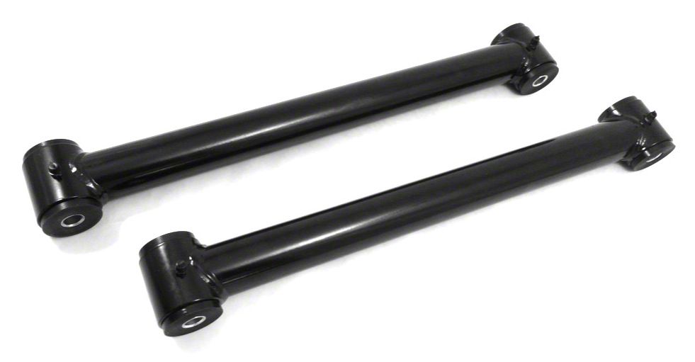 Stable Wheel Power. Revamp your old factory control arms with these new Black Fixed Length Rear Lower Control Arms from Steinjager. These are specifically made to improve the overall handling and steering of Wranglers with stock height up to a 2.5-inch suspension lift. This pair also gives smoother on and off-road rides without the trouble of adjusting the arms. Additionally, these control arms come in a sleek black color that perfectly complements the rugged JK exterior.