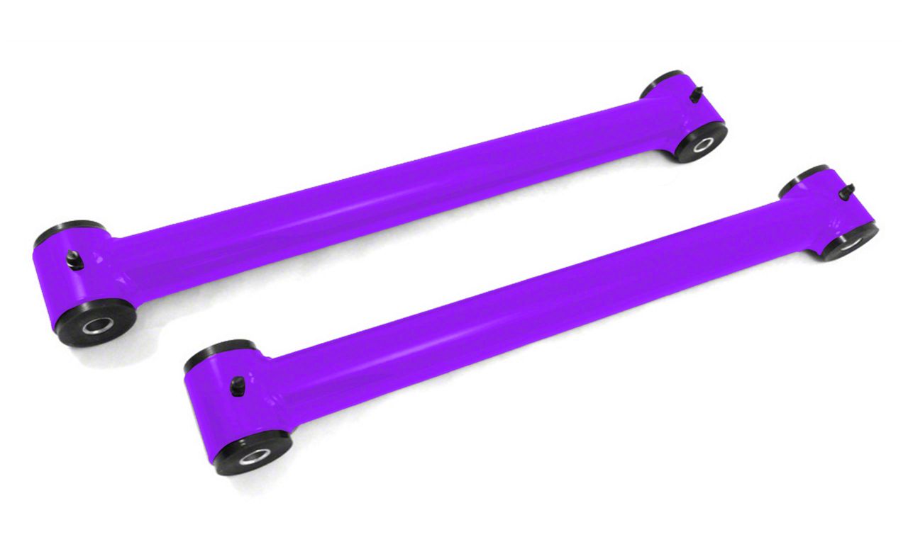 Enhanced Precision Control. Take on any rugged terrain with style and confidence with these Sinbad Purple Fixed Length Rear Lower Control Arms from Steinjager. This pair comes as a highly improved replacement for the used control arms of JKs with 0 to 2.50-inch suspension lift. They provide better precision control and steering stability while adding some lively spark of bright purple to the Jeep’s powerful exterior.