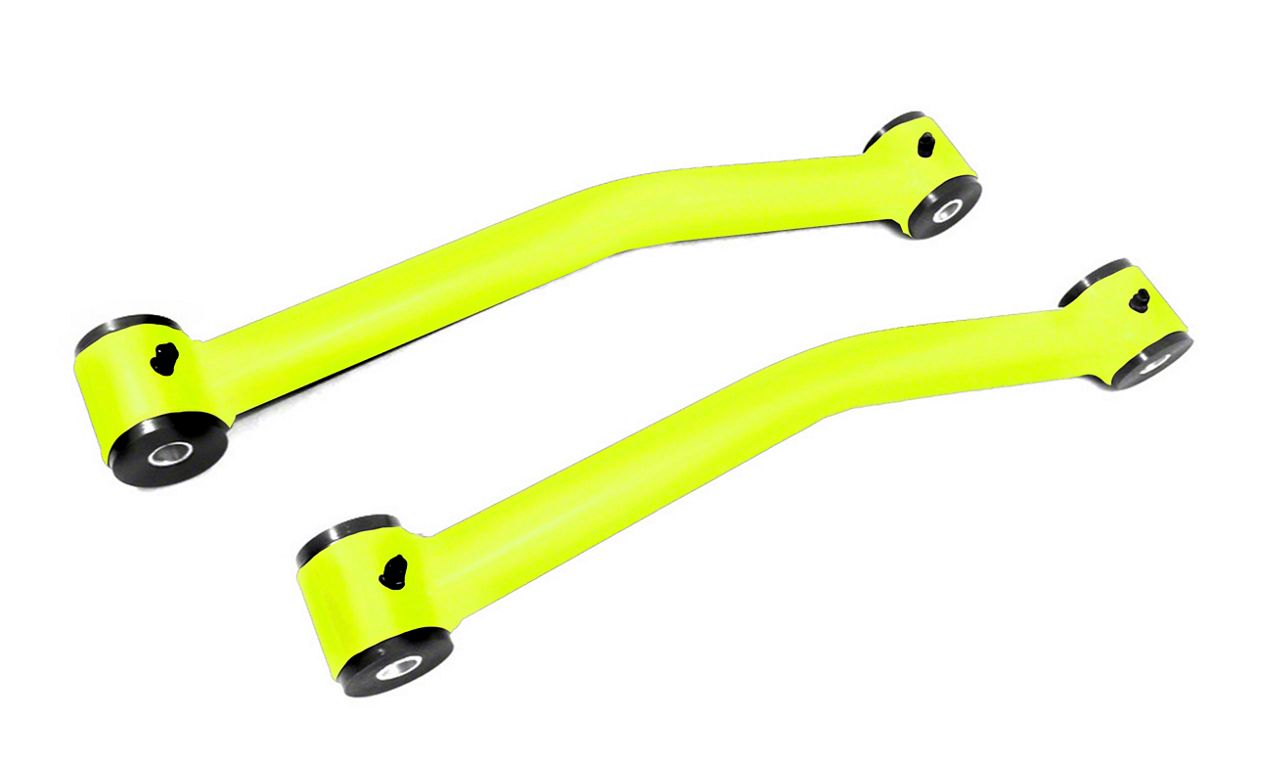 Quality Craftsmanship. This pair of rear upper control arms is manufactured from strong materials, so you can trust that they’ll last a long time. The gecko green powder coat looks rugged, but that’s not its only purpose. It also protects against off-roading hazards while preventing rust and corrosion from forming.