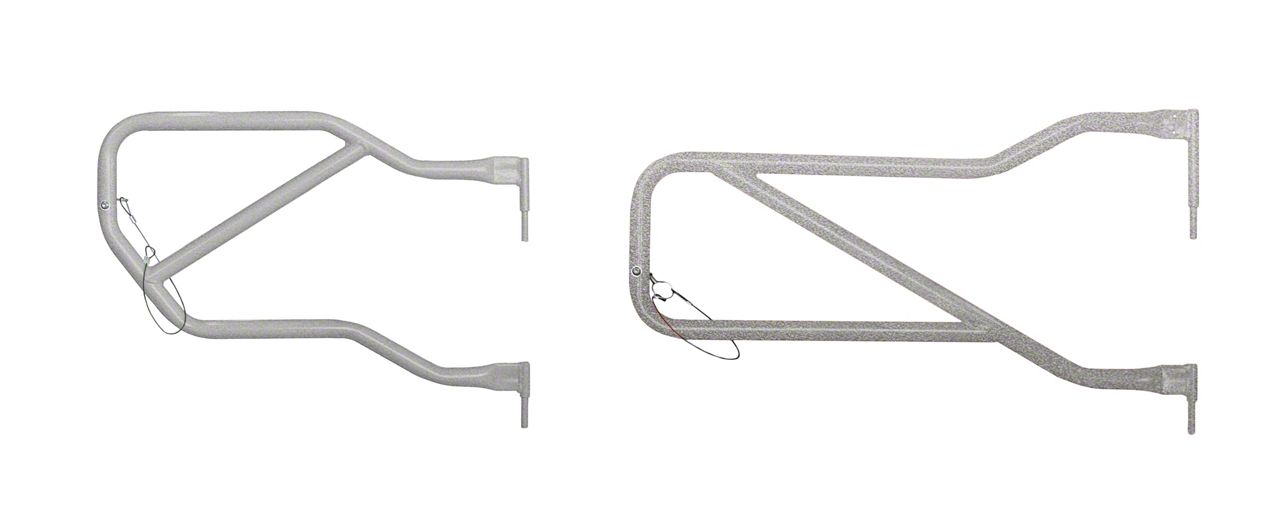 Safer Off-Road Experience. Get the most out of your off-road adventures with Steinjager Front & Rear Trail Tube Doors in Gray Hammertone. These durable tube doors are designed to not only look great, but to also increase your field of view for better navigation of tricky terrain. Aside from these, installing Steinjager tube doors to your Wrangler allows for a safer open-air driving experience.