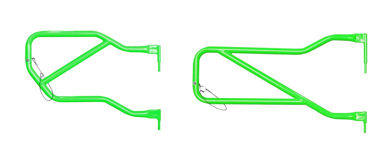 Open, Off-Road Safety. Steinjager Front & Rear Trail Tube Doors in Neon Green lets you experience the freedom of open-air off-road driving while in the safety of your Wrangler. These durable tube doors provide access to fresh air and better visibility in navigating tough terrain. Get that stylish door upgrade for your Wrangler and give yourself added protection on the road.