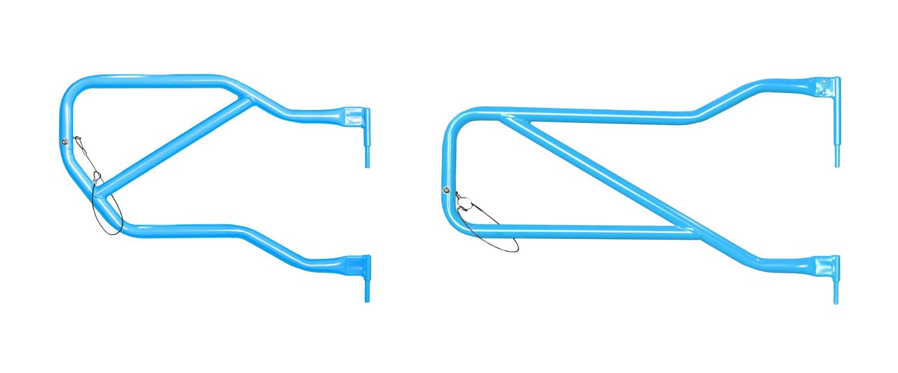 Enjoy Off-Road Thrills. Enjoy an open-air travel experience in your Wrangler with Steinjager Front & Rear Trail Tube Doors in Playboy Blue. These heavy-duty trail tube doors provide better on-trail visibility and protection when driving off-road. Install these rugged tube doors for a true open-air driving experience but with safety in mind.