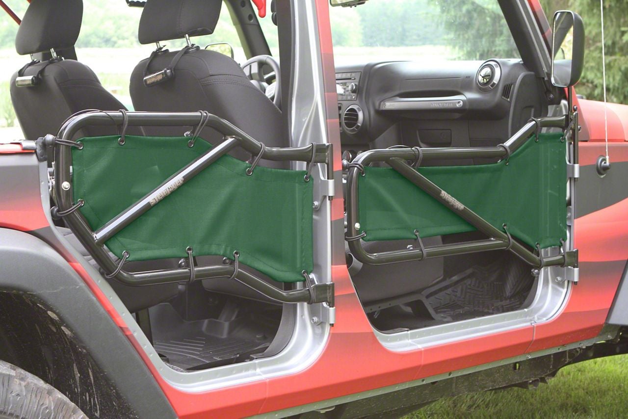 Quality Accessory. You installed Steinjager tube doors on your Jeep Wrangler JK 4-door to embrace an open-air atmosphere with the added safety feature of a structural barrier while taking to all your on and off-road adventures in your Jeep. Now you can add some personality to your tube door with the Steinjager Front and Rear Tube Door Covers – Spruce Green.